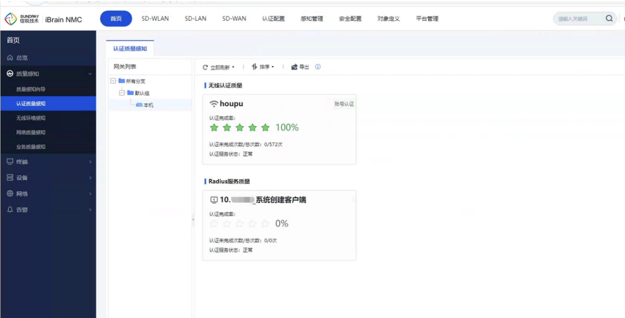 鉴于用户内部使用阿里钉钉办公软件,信锐无线则采用了对接阿里钉钉进行一键认证的方式,同时开启了认证质量感知功能,可以随时掌握认证质量情况,清晰界定认证失败原因,改善认证体验(图二)。